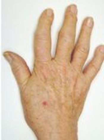 A 51-year-old African American man with a 15-year history of chronic hepatitis C and sarcoidosis presented with persistent bilateral hand pain. The pain was aggravated by physical activity and had a waxing-and-waning pattern.